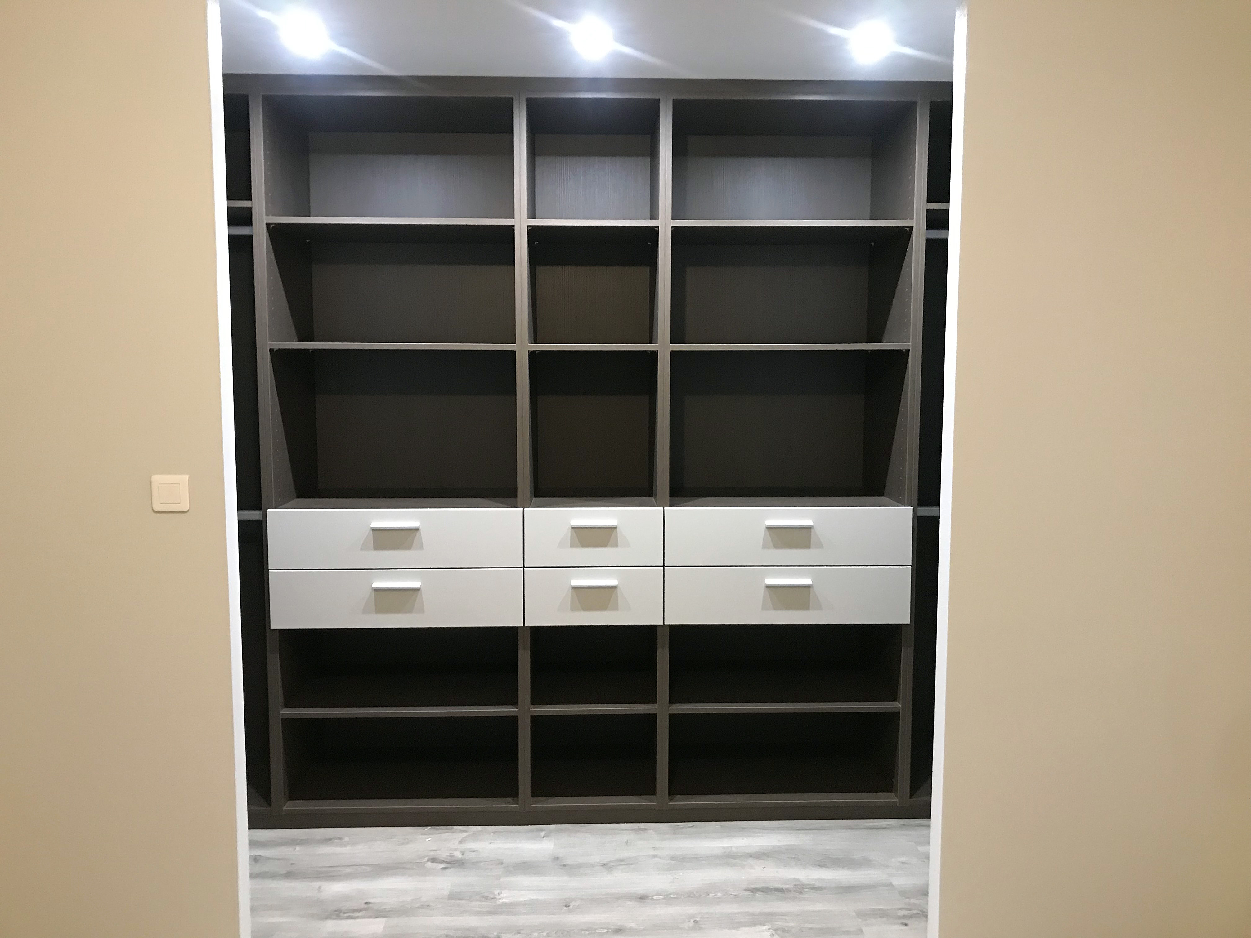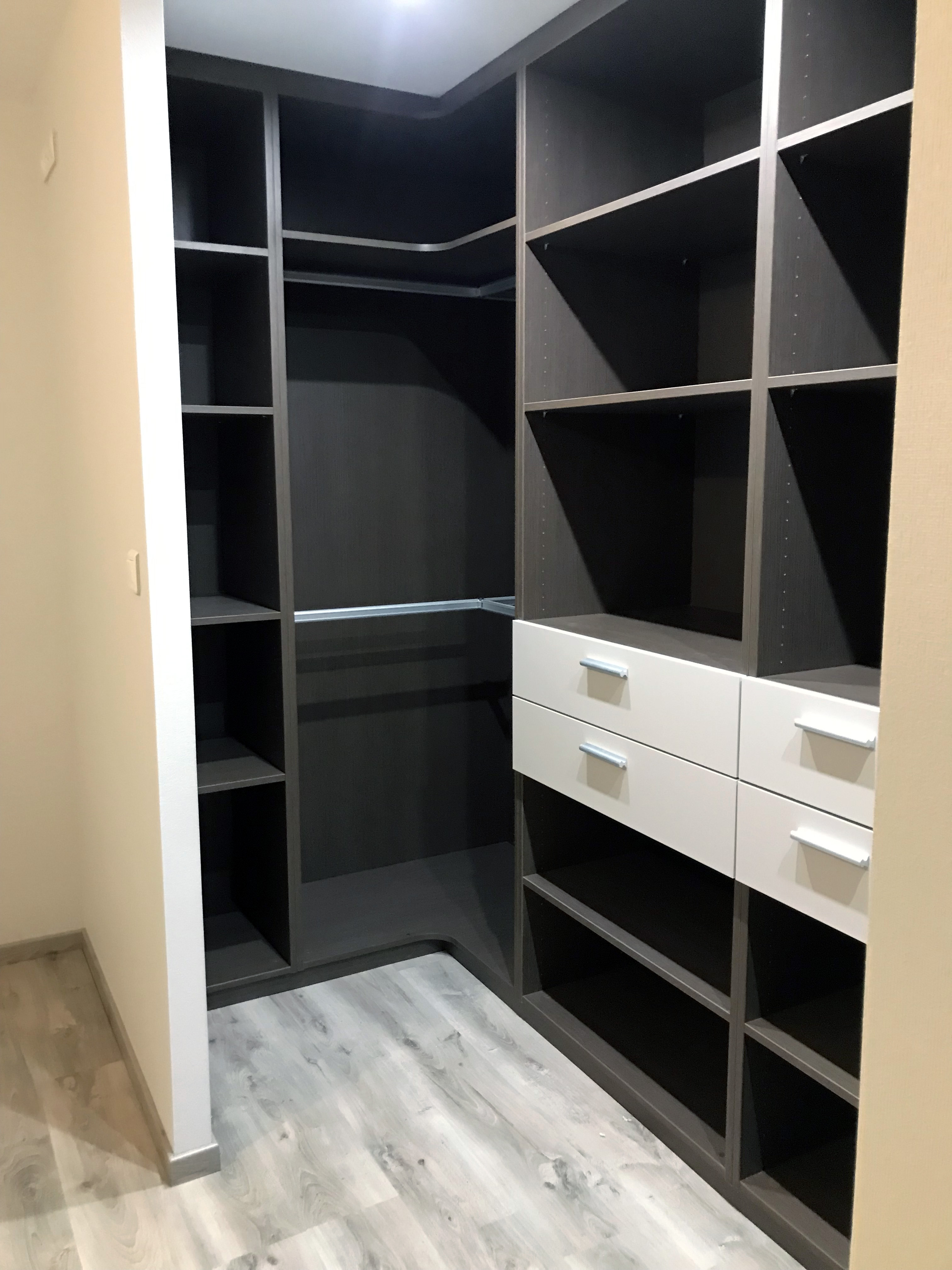 Dressing d'angle marron et blanc dans une niche de la pièce
